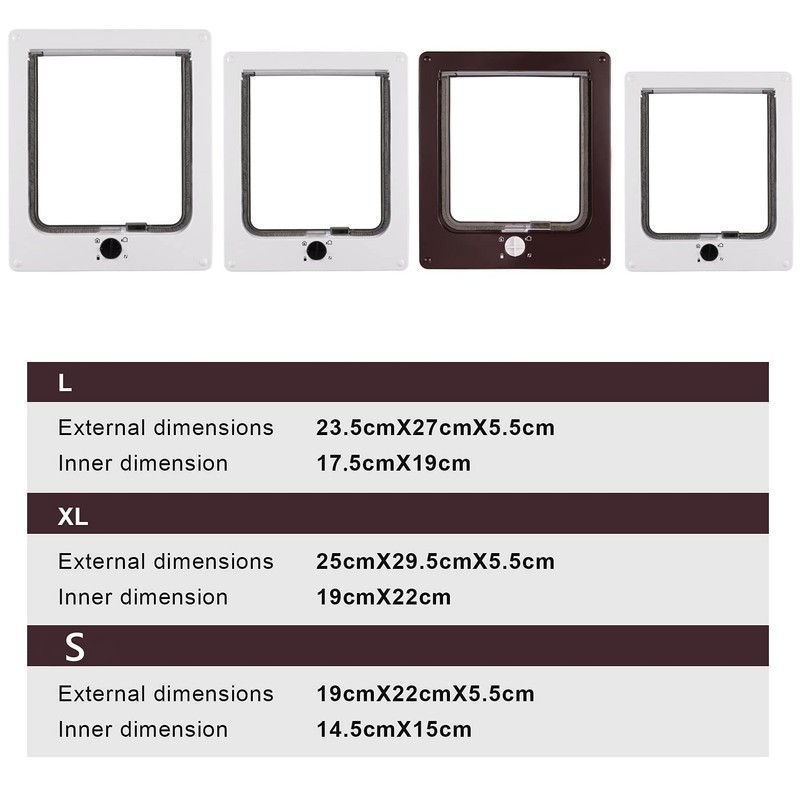 - Cat flap - 4 closure types: cat flaps have 4 locking options: open inwards, open outwards, open both directions, closed. You no longer need to open your door when your pet wants to enter the room. The cat door makes your life easier and makes your pet more free at home.