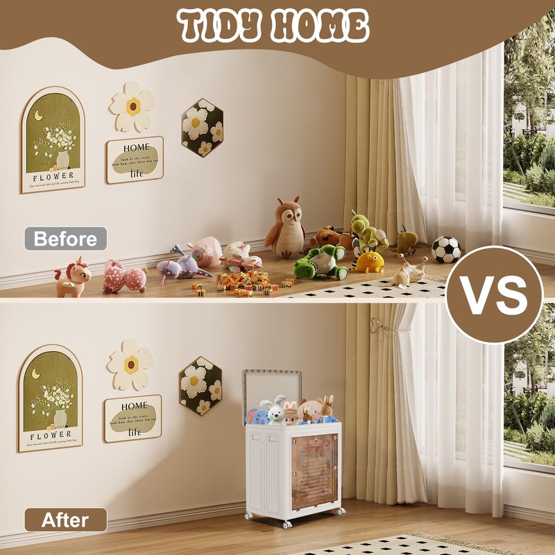 - 【Smooth Mobility System】-This large toy storage features a 4-wheel system (2 locking casters + 2 standard wheels) that combines effortless mobility with secure stability. Silent 360° swivelling wheels for quiet and smooth movement on the floor.