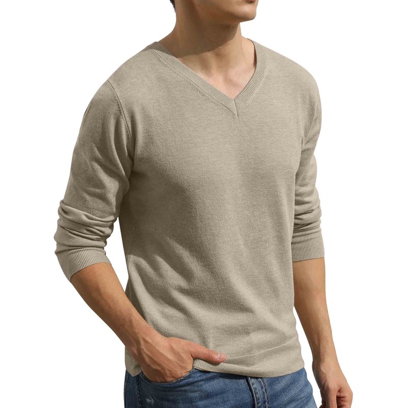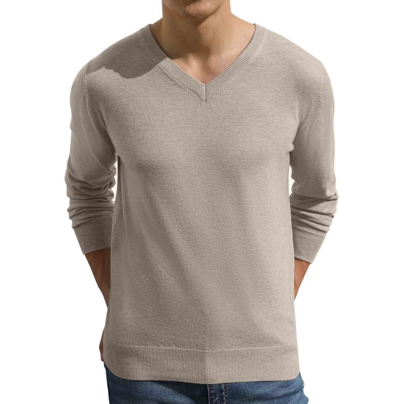 Sailwind Mens V-Neck Wool Knit Casual Pullover Sweater Khaki