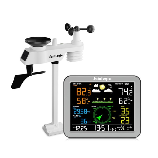 Sainlogic Wireless Weather Station with Outdoor Sensor,Weather Forecast, Temperature,Air Pressure,Humidity,Wind Gauge,Rain Gauge