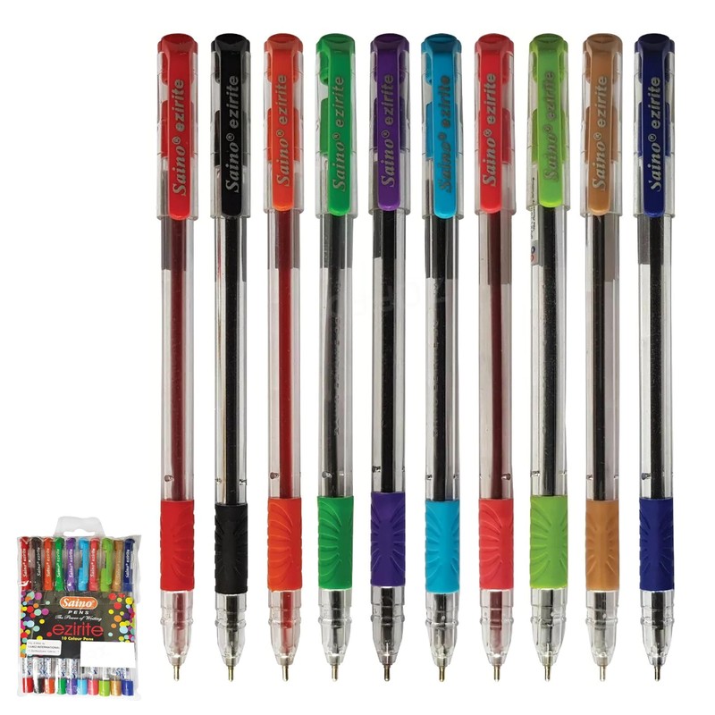 SAINO Ezirite Ballpoint Pens, MULTICOLOUR, Fine Point (0.6mm), Pack of 10, Fine Ball Pens, Notetaking Journal, Write Draw Sketch Colour, School Office Home Use