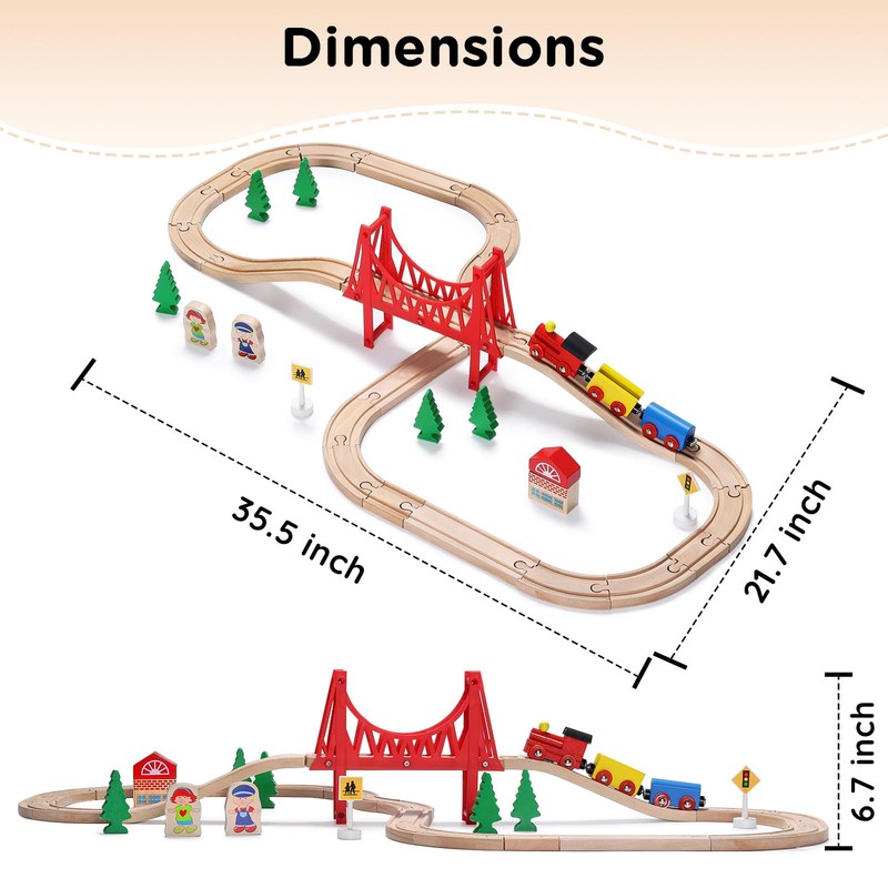 SainSmart Jr. Wooden Train Set for Toddler - Double-Side Wooden Tracks Fits Brio, Thomas, Melissa and Doug - Expandable, Changeable-Kids Wood Toy Train for 3,4,5 Year Old Boys and Girls