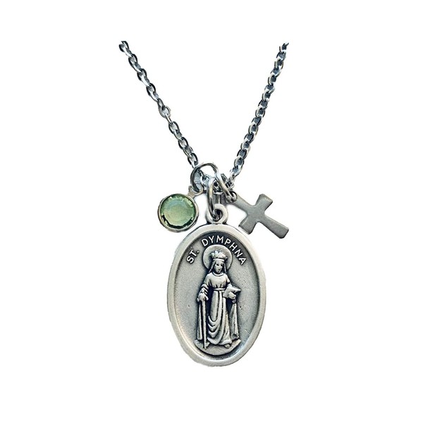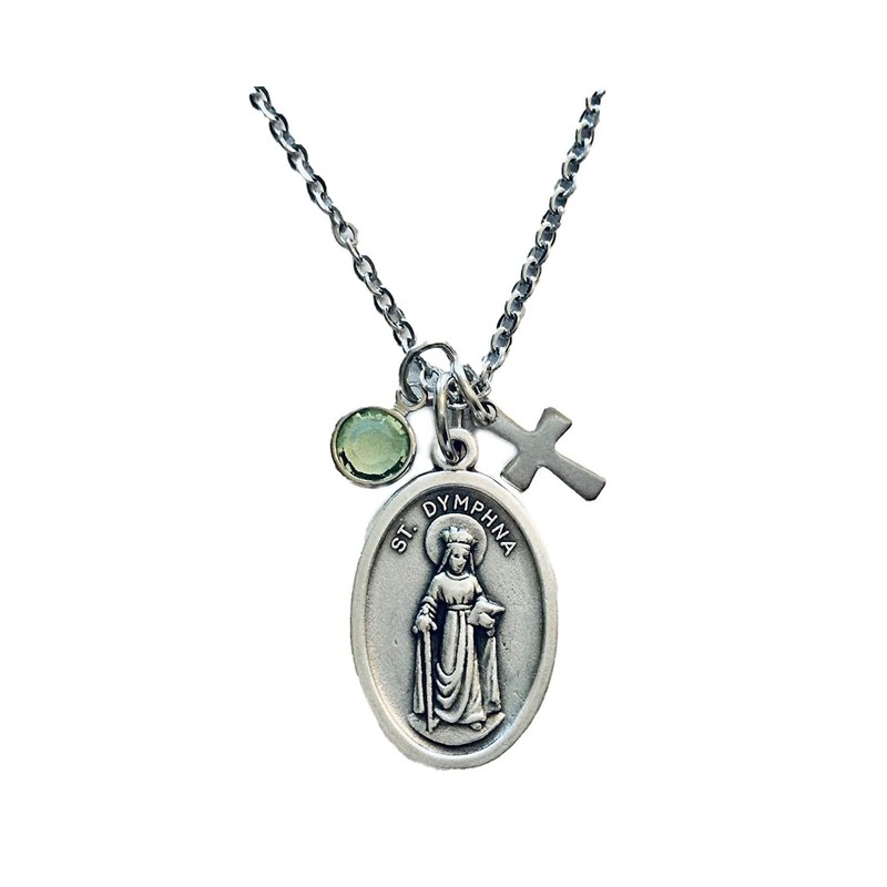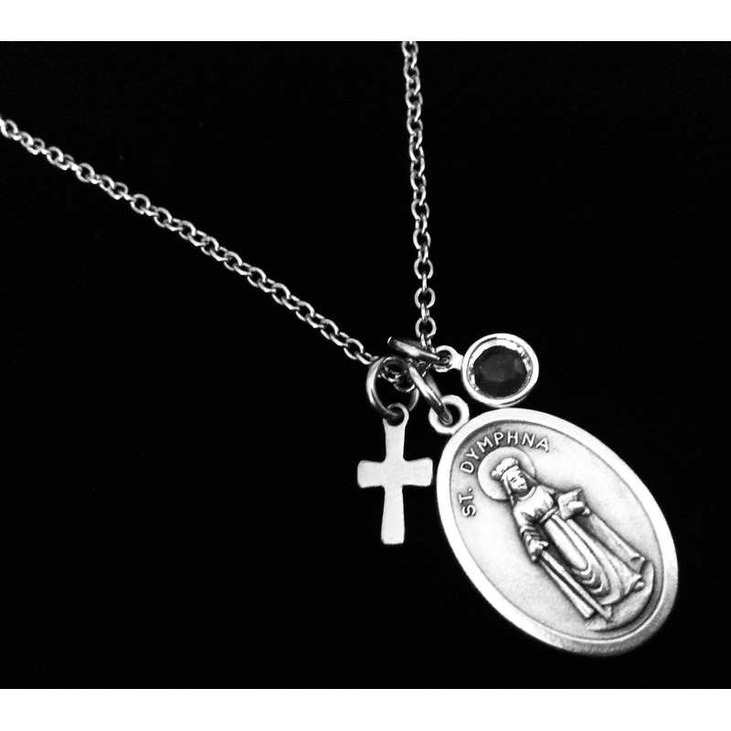 Saint Dymphna Necklace Silver Catholic Medal Trendy Inspirational Gift for Her