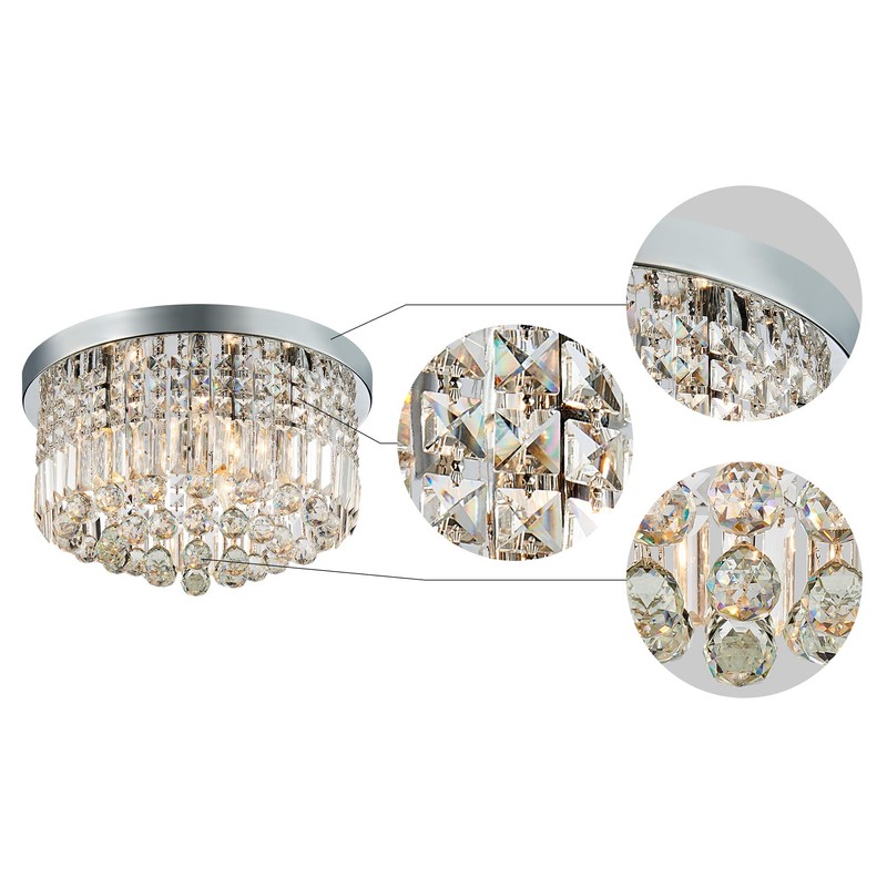 Add some elegance to your home with this Saint Mossi modern K9 Crystal Rain Drop Chandelier ceiling light. This dynamic lighting element features generous rows of cascading 100% real crystals to catch the light. Cascading crystals reflect light beams in a manner that makes it appear as if it has multiple light sources. The unique design makes it a conversation piece that works for any room. This elegant flush mount pendant ceiling light features a chrome finish. Combined with the crystals and Chrome, it stunningly glistens. Dress up your entryway, your dining room or even your bathroom with this classy fixture. The crystals deflect the light, creating a multi-directional glow. The modern and traditional elements allow this lamp to blend with a variety of styles. We recommend Saint Mossi branded LED bulbs for compatibility of our lights.