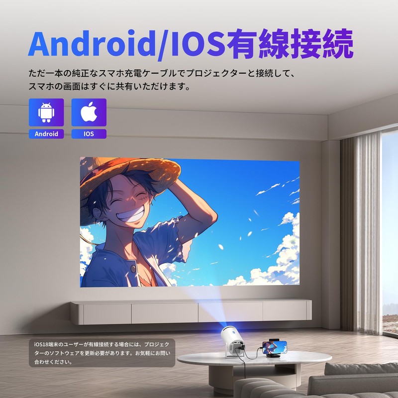 - Android & IOS Wired Connection: The home projector supports Android & IOS wired connection. Connect your smartphone and projector with just one cable to share your phone screen. You can enjoy your favorite videos even in environments without WiFi network. Compared to wireless connections, the projector ceiling projection wired connection technology allows you to directly transfer the data of your smartphone to the projector via the cable, making data transmission more stable. No need to worry about interference or disconnecting! Note: Due to copyrighting, video apps such as Netflix, Prime Video, Disney+, etc. cannot be projected from your smartphone to a projector. We recommend connecting it to a computer or TV Stick via HDMI connection to watch the videos. )