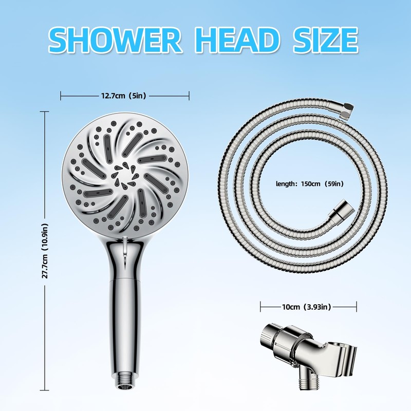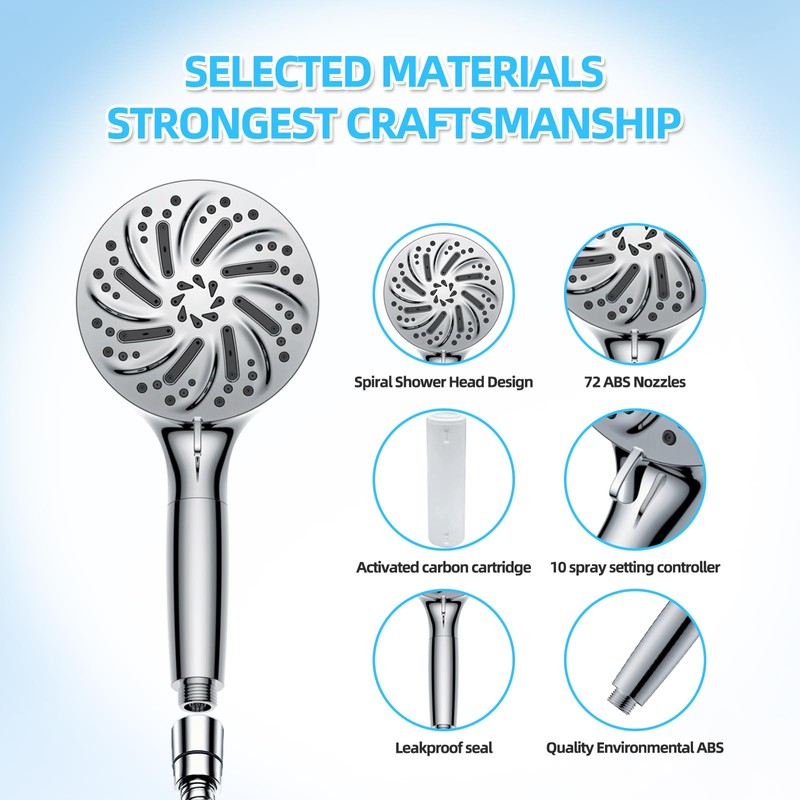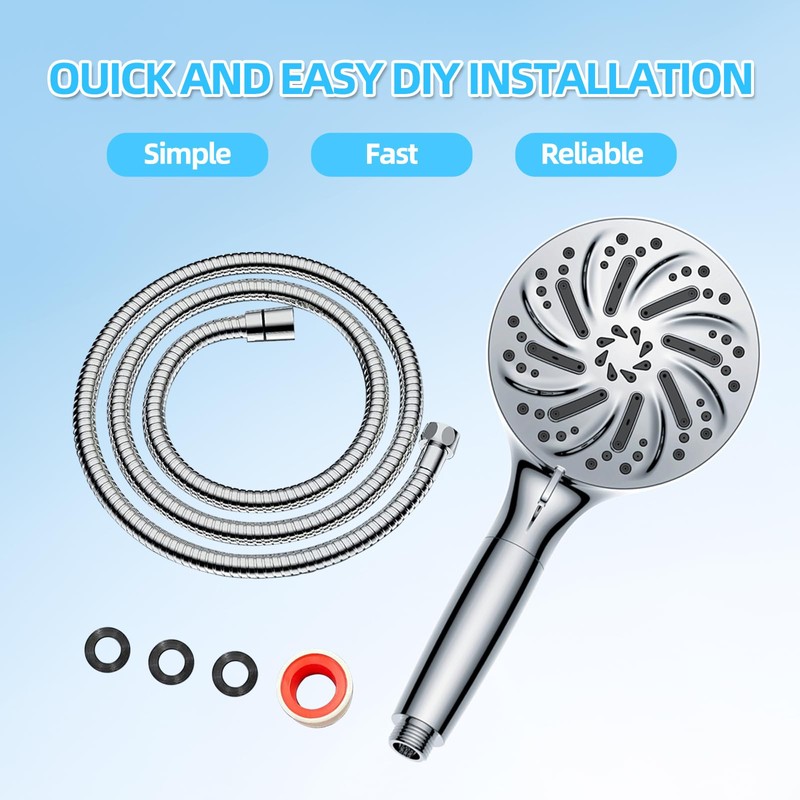 • 10 Spray Functions of High Pressure Shower Heads:Our hand held shower head comes with 10 unique modes for a different showering experience to meet the needs of the your whole family, making it the perfect replacement for your old shower.Built-in Power Wash Mode will let you clean up in seconds