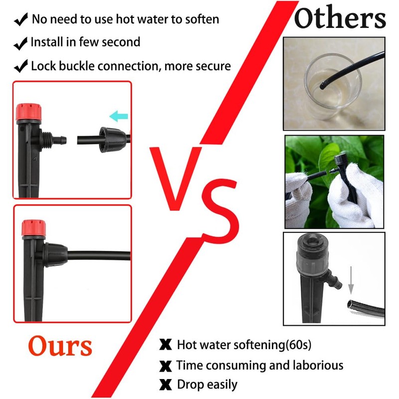 • 【Wide Range of Applications】These emitters are designed for large area lawn garden irrigation, in greenhouses, flower beds, vegetables, herb gardens, orchard,fruit, nurseries irrigation, and garden plant cultivation watering.
