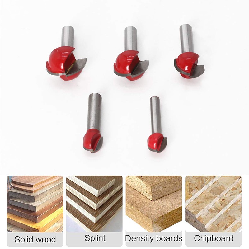 Saipor 5-Piece 8 mm Shank Round Nose Cove Core Box Milling Cutter Carbide Rou...