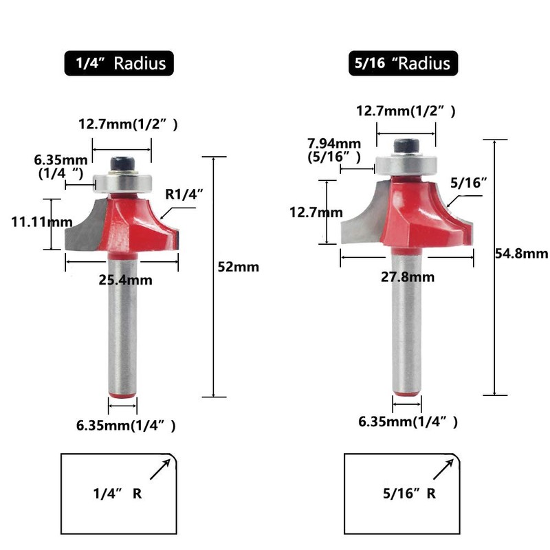 - 【Size】Shank: 6.35mm(1/4"), Bearing Diameter: 12.7mm(1/2")