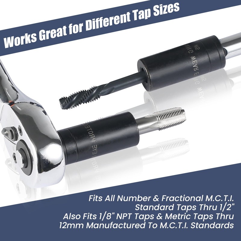 3. Suitable for 1/4” or 3/8” square drive tool. Fit all number and fractional M. C. T. I. standard taps thru 1/2".