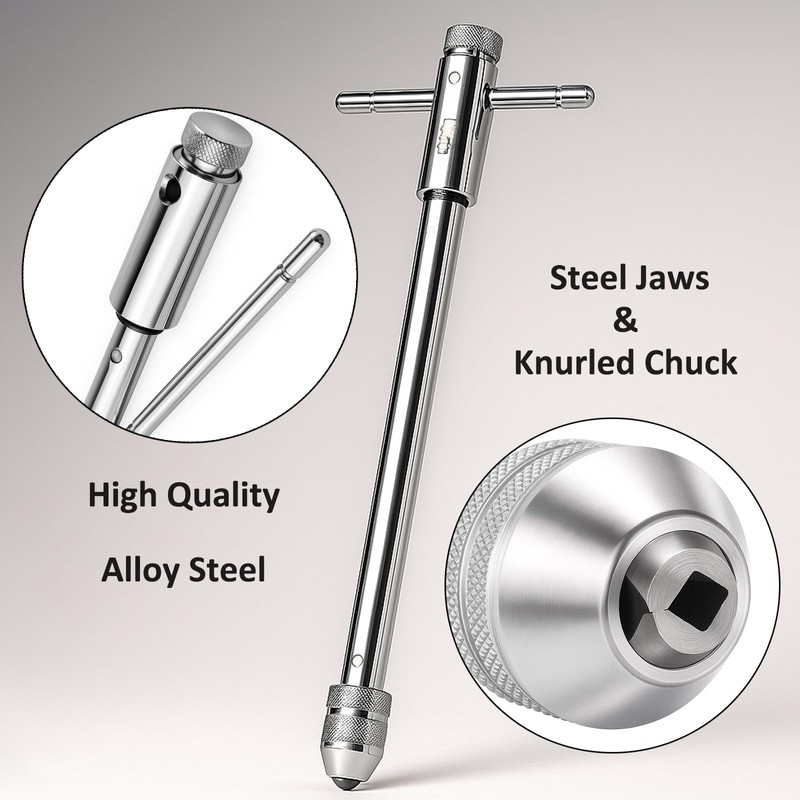 - Adjustable T Handle Tap Wrench Machinist Tool, can be single hand operation, more convenient using. It can improve work efficiency, is a good partner for DIY tapping;
