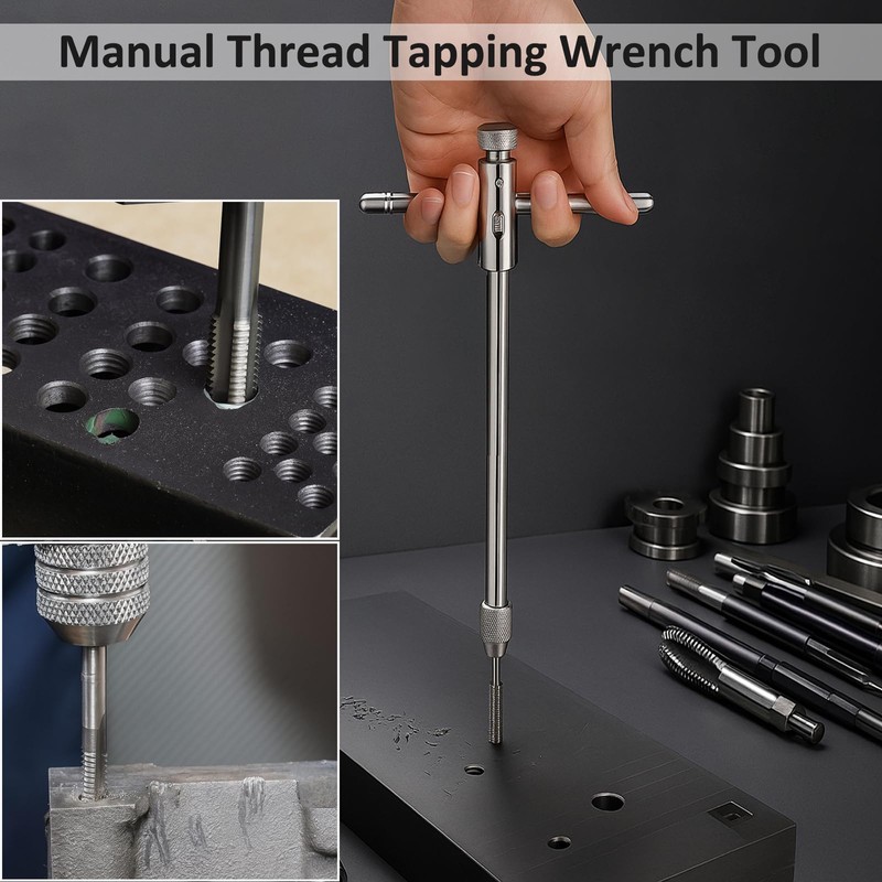 - T-Handle Tap Manual Thread Tapping Wrench Tool Set: Suitable for maintenance, repairs, and re-tapping. Can be used on materials such as wood, soft metals, aluminum, and plastic sheets; Manual tapping can be used in conjunction with drill bits, reamers, screw extractors, and other manual rotary tools