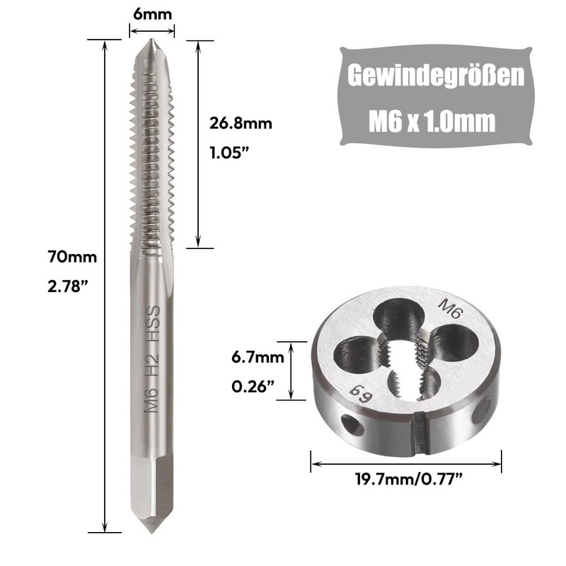 - Package includes: 1 x M6 x 1.0 mm tap + 1 x M6 x 1.0 mm tap die, 1 mm pitch, right-hand tap