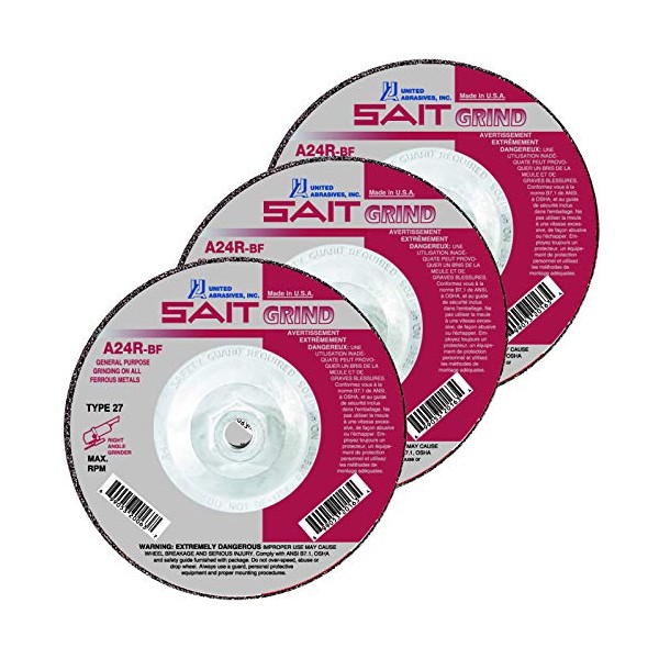 - United Abrasives SAIT A24R-BF Type 27 Grinding Wheels - 7 inch Diameter, 1/4 inch Thick, 5/8-11 Hub