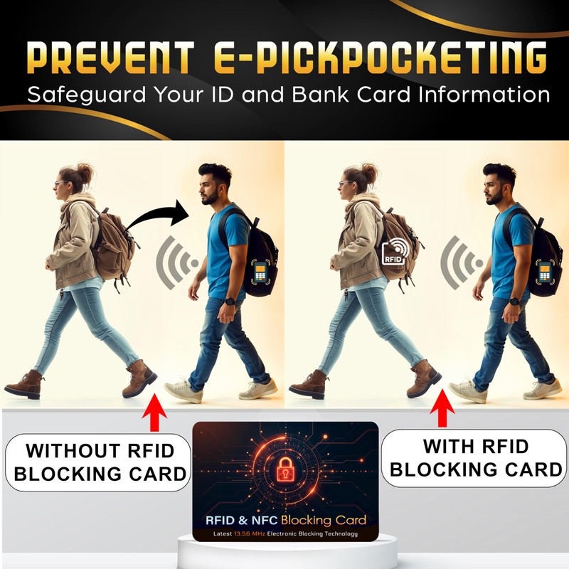- PROTECT YOUR E-PICKPOCKETING WALLET - Prevent potential identity and financial theft through your contactless cards. Don't become a victim of electronic theft in our growing contactless society. This is the simplest and most effective prevention solution. Blocks all RFID and NFC signals to secure your data and have peace of mind.