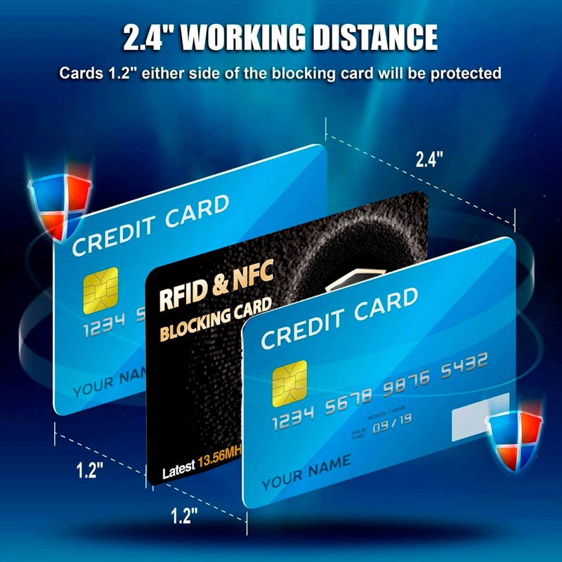 - BROAD WORKING DISTANCE: A large working distance of 2.4” provides complete protection for your whole wallet. Cards 1.2” either side of the card will be fully secure from e-pickpocketing.