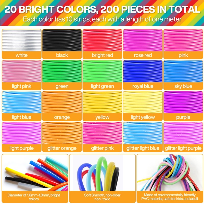 - Versatile set: 200 braided PVC ropes (length 1 m, diameter approx. 1.8 mm) in 20 bright colours as well as 10 split rings, 10 key rings, 10 key clips and 10 lobster clasps.