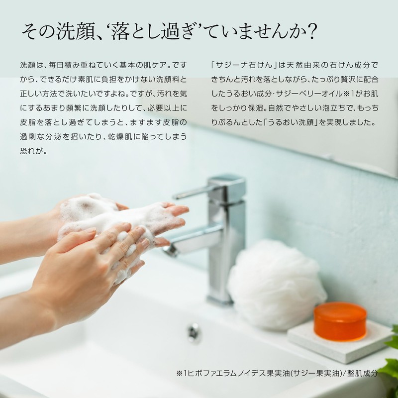- Do you have your face wash too much? Naturally derived soap ingredients to remove stains while thoroughly removing soap, the moisturizing ingredient contains plenty of luxury. *1 keeps your skin moisturized. The natural and gentle foam makes it a "moisturizing face" for a soft and fluffy look. 1 Hippofaelamunoides fruit oil (saggy fruit oil) / Skin supplement