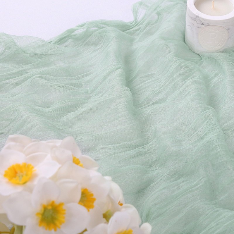 SAJOO 10ft Sage Green Table Runners 120inch Rustic Boho Tulle Gauze Sheer Table Runner Bridal Shower Decorations Baby Shower Bridal Shower Spring Runner Easter Decor