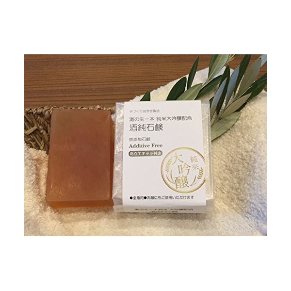 Sake Pure Soap, 4.6 oz (130 g), Jumbo Size for Baths, "Nada no Raw Ippon" Junmai Daiginjo, Handmade Kettle Fired Soap, Angel Soap