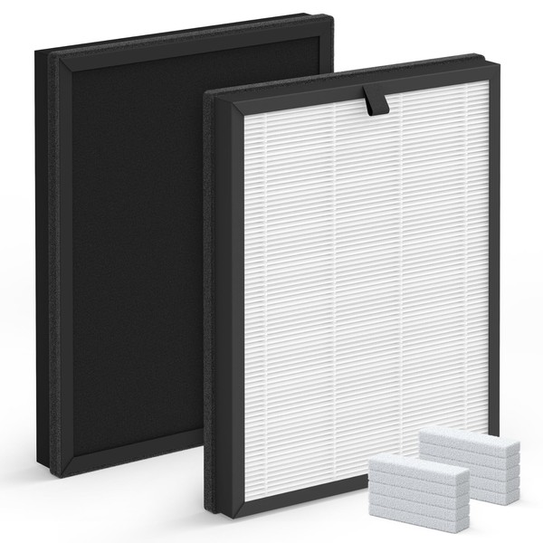 - 【3-Stage Filtration】Combines a pre-filter (traps large particles), H13 HEPA (captures airborne particles as small as 0.3-micron dust/pollen/pet dander), and activated carbon layer (neutralizes smoke, cooking smells, and VOCs)