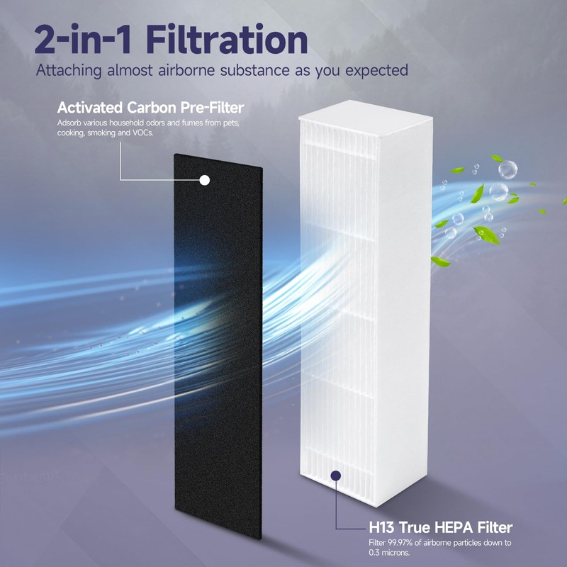 - 【Extended Filter Lifespan】The activated carbon pre-filter acts as a first line of defense by capturing large dust particles and reducing common odors from pets, smoking, and cooking. By effectively capturing these particles, it helps to extend the life of the HEPA filter, offering you even greater value for your purchase