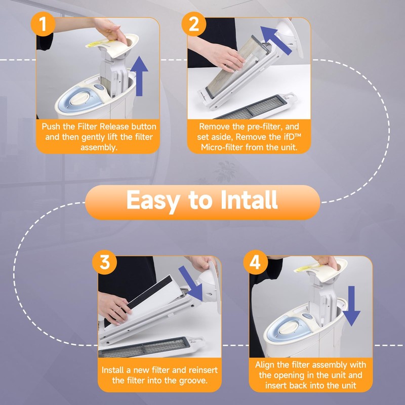 - 【Easy Installation and Replacement】Replacing the HFD010 filter is quick and easy with no tools required. The Filter can't be washable. For optimal performance, it is recommended to replace the HEPA filter every 3-4 months and the pre-filter every 1-2 month (varies by air quality)