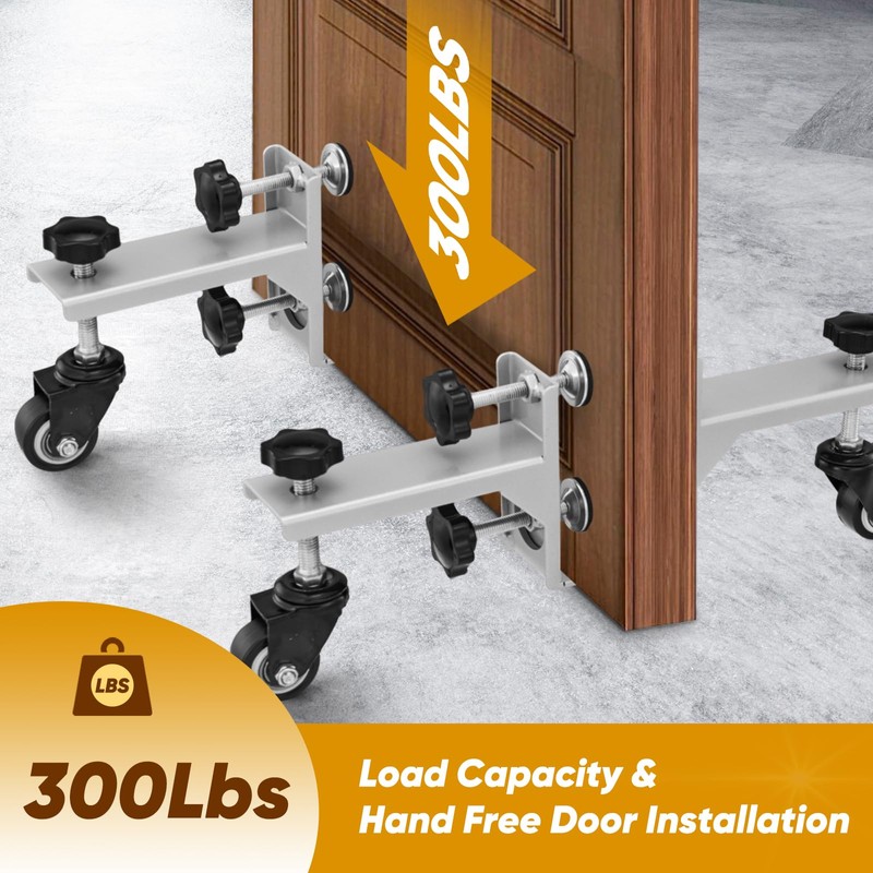 - STRONG AND DURABLE: The Saker Door Panel Installation Kit is built from high-strength steel with a maximum weight capacity of 300 pounds, ensuring long-lasting durability and resistance to warping. This reliable kit includes a door installation dolly for easy handling and smooth transportation, while the included door installation tools make setup quick and hassle-free. Featuring a robust black coating, it provides excellent protection against corrosion and rust, ensuring reliable performance in even the toughest conditions.