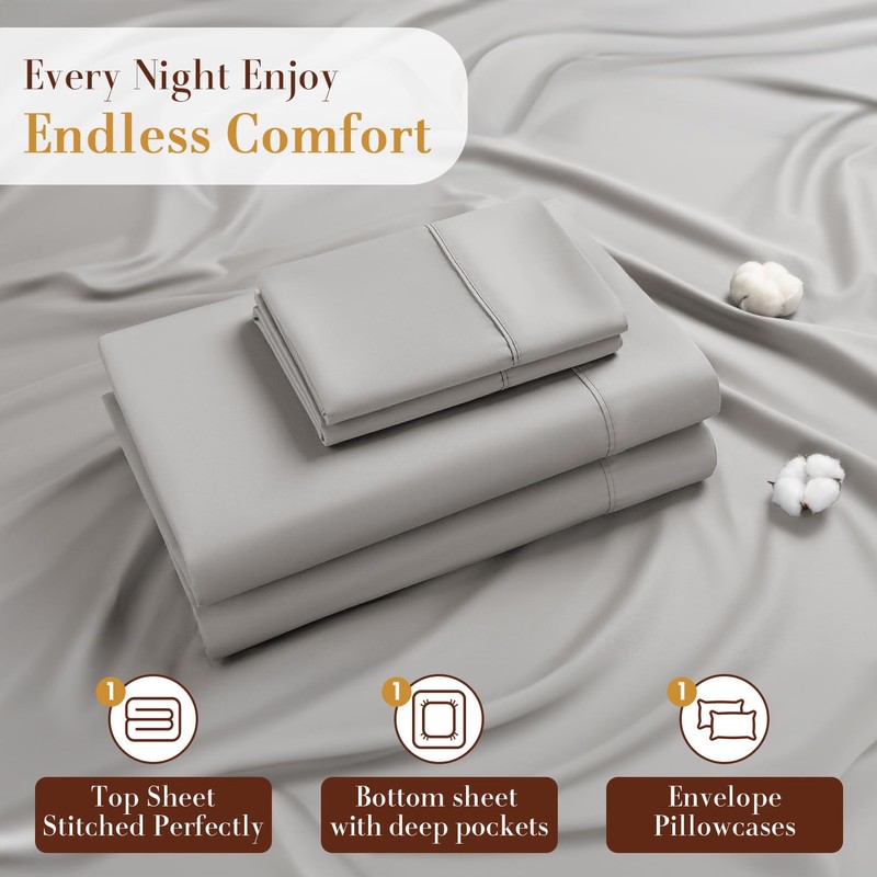 SAKIAO 1200 Thread Count Cotton Sheets, 100% Egyptian Cotton Sheet for King Size Bed, Very Smooth Soft with 18" Deep Pocket Sheets 4-Pc Sets (Dove Grey, King)