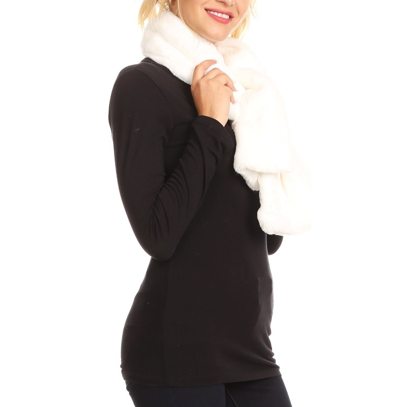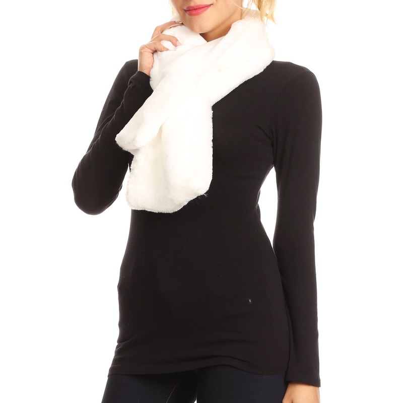 - This scarf features a long and thin design. There is a slit at one end of the scarf that is not visible from afar, and can be used to loop the other end of the scarf through to secure it wrapped around the neck. Can also be worn draped around the neck if desired. Scarf is opaque, thick, and durable. Faux fur is soft and comfortable.