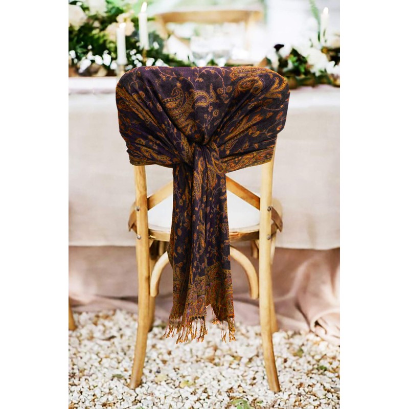 Sakkas 70" x 28" Double Layer Jacquard Paisley Viscose Pashmina Scarf/Stole - (20+ Rich Colours), sapphire