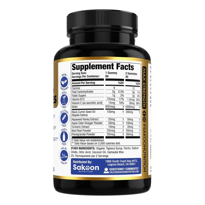 Sakoon Aceite De Semilla Negra Y Miel 60 Gomitas Sfn