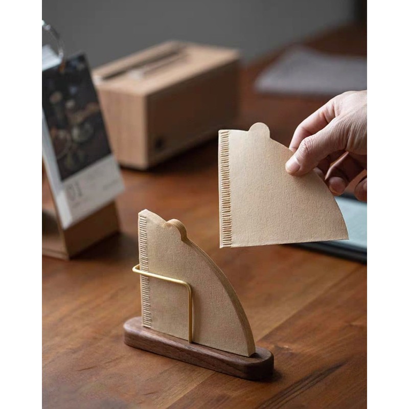 - This coffee filter holder combines a beautiful wood grain walnut and a brass rod that is overflowing with fashion