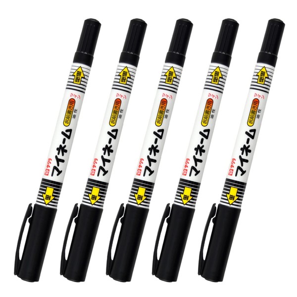 Sakura Craypas YKT-5P Dual-Tip My Name Marker Pen, Oil-based, Labeling Pen, Fine Point, Black, 5 pens
