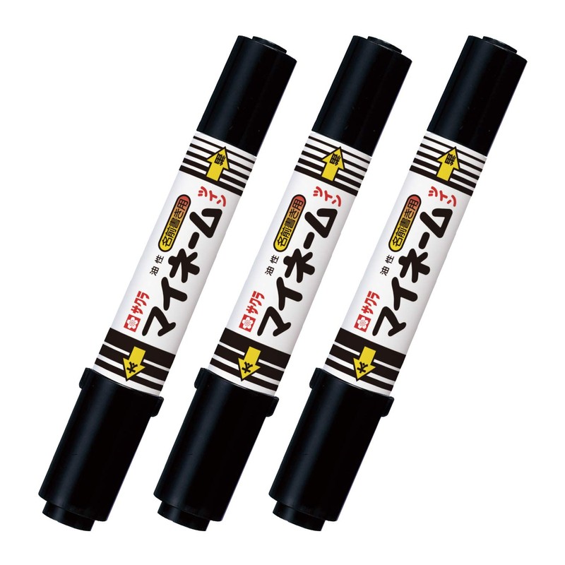 Sakura Craypas YKT-L3P Dual-Tip My Name Marker Pen, Oil-based, Labeling Pen, Thick Point / Fine Point, Black, 3 pens