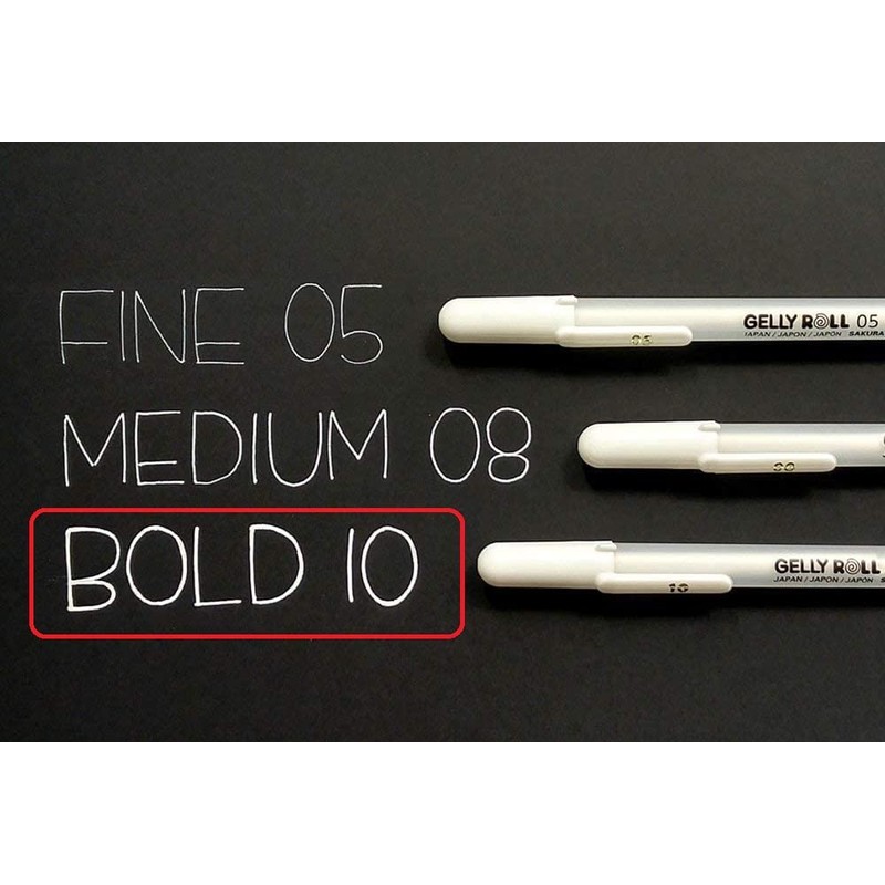 - Sakura Gelly Roll White, Bright White Pens in Case, Size 10 (0.5mm) + Sakura Pigma Micron Black 05
