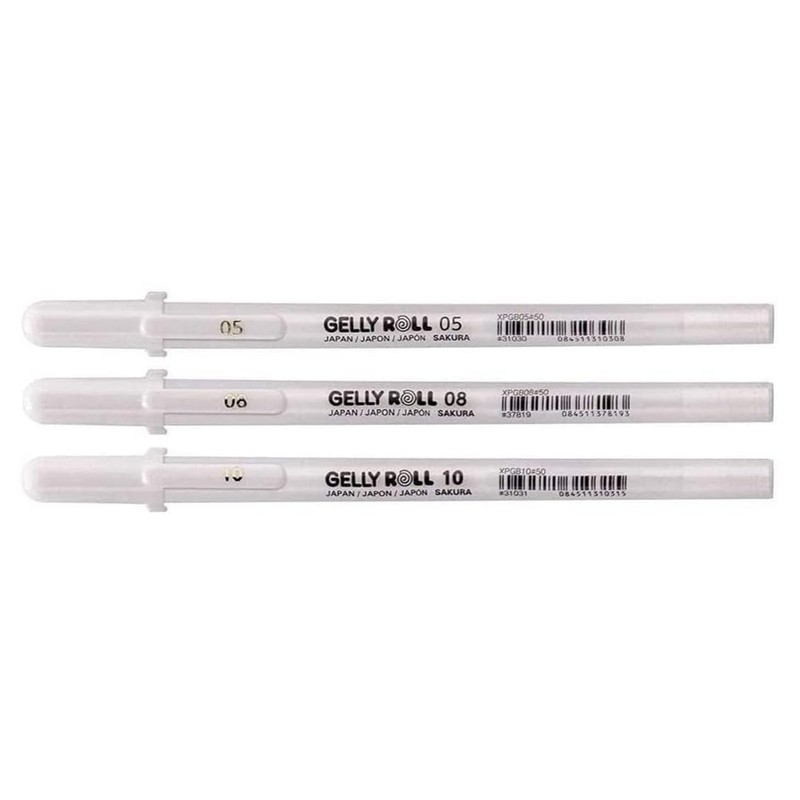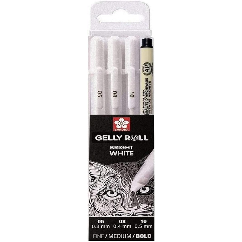 - SAKURA Gelly Roll White, Bright White Pens in Case, Mix Size 05/08/10 and 1 Marker 005