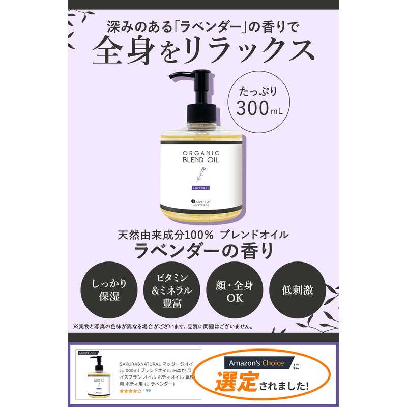 SAKURA & NATURAL Massage Oil, 10.1 fl oz (300 ml), Lavender Blend Oil, Rice Bran, Rice Bran, Body Oil, Carrier Oil, Commercial Use, For Body Use (2. Lavender)