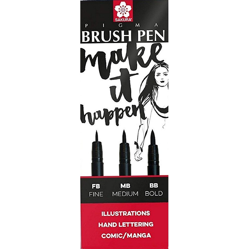 Sakura Pigma Brush Pen Black ,set 3 pcs,1mm ,2mm, 3mm