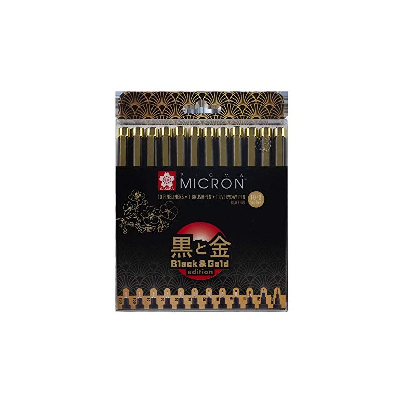 Sakura Pigma Micron Fineliner Pens Black and Gold Edition Black Ink Pack of 10 + 2 FREE