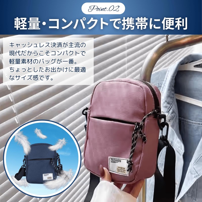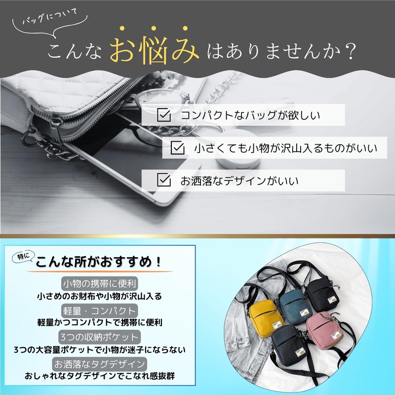 sakurart Shoulder Bag, Small, Nylon, Cross-body Shape, Women's, Lightweight, Compact, Mini Bag, Small Bag, Small Bag, Messenger Unisex, Black