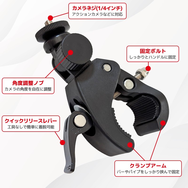 sakurawing Universal Camera Mount, Handlebar Mount, Clamp, Bicycle, Motorcycle, Action Camera, Digital Camera, Digital Camera, 1/4 Screw, Head Head 1 Piece