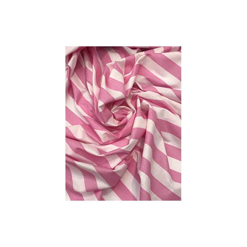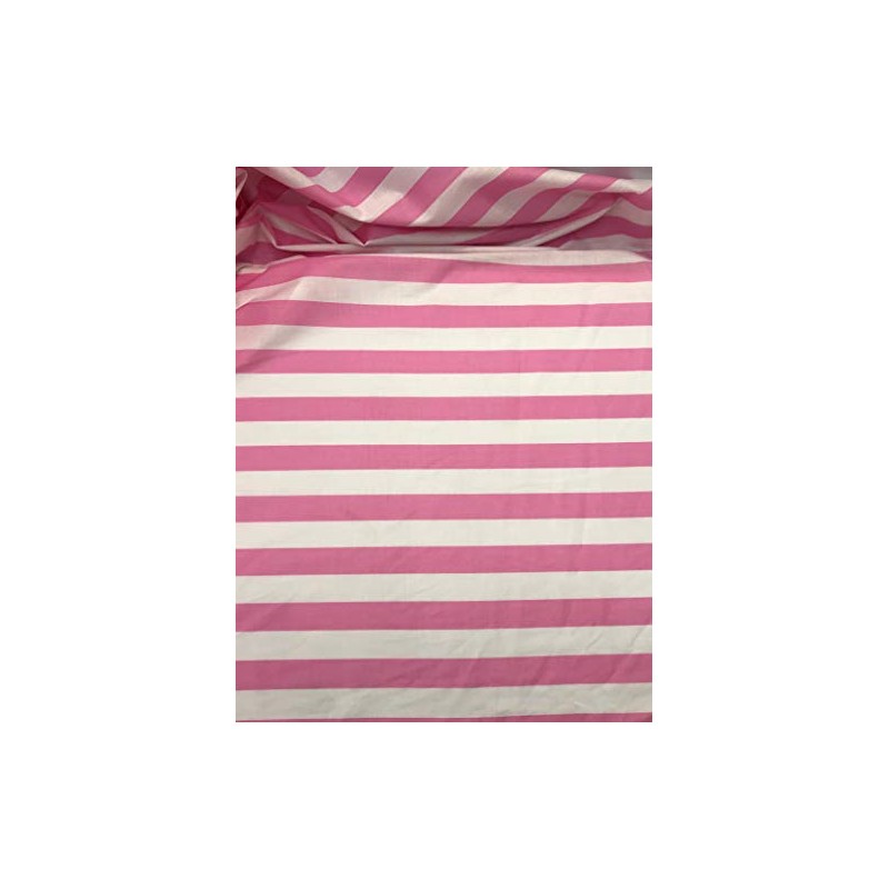 Sal Tex Fabrics, 1" Stripe Poly Cotton Fabric Print, Two Color Combination, Sells by The Yard, 60" Wide (Pink/White)