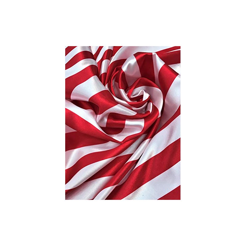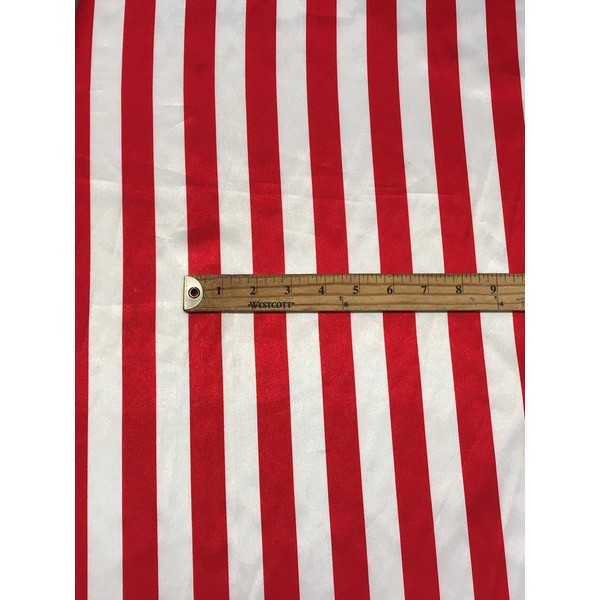 Sal Tex Fabrics, White/red 1 inch Stripe Soft/Silky Satin Polyester Fabric, Sells by The Yard.