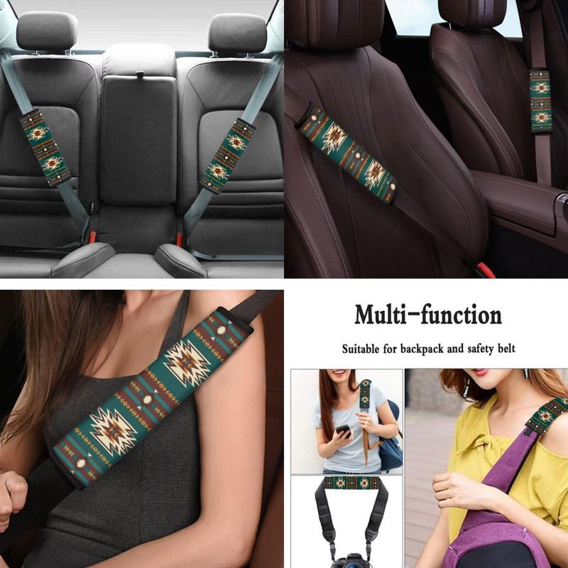 Salabomia Aztec Seat Covers Full Set with Western Steering Wheel Cover, Shoulder Pads, Tribal Seat Covers Car Accessories Universal Fit for Most Cars, Green and Brown