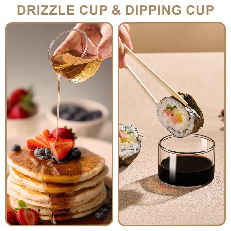 • Perfect Portion:Our Dipping Sauce Cup measures 2.36'' x 1.57'',capacity is 1.6 oz of each cup. Small glass bowls are exquisitely designed to provide ideal individual portions, well-suited for serving as dipping sauce cups .