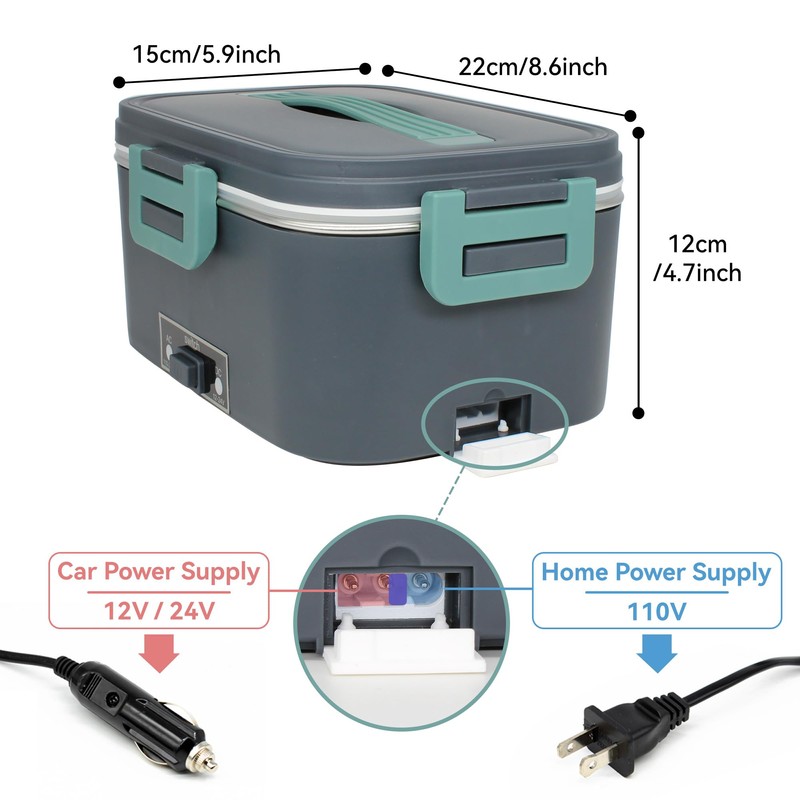 - Versatile Power Compatibility: The Electric Lunch Box adapts to 12V, 24V, 110V sources, allowing for heating on-the-go in cars, trucks, offices, or homes with both household and car power cords.