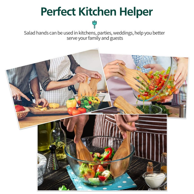 - 【Servers & Hands】- Wood salad servers includes 1pcs 10.2in salad spoon, 1pcs 10.2in salad forks and 2pcs 7.1in salad hands, they can be used for mixing, tossing and cooking. Hanging hole can makes storage more easily.
