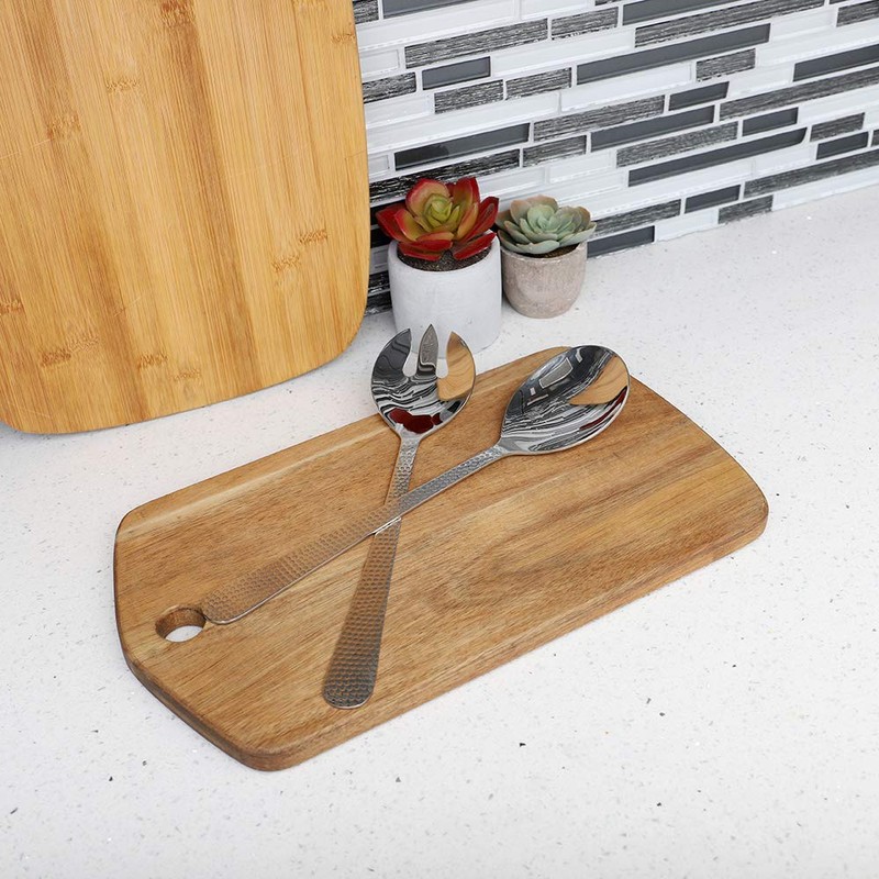 Salad Spoon and Fork Serving Set by Home Basics | 18/0 Stainless Steel with Hammered Finish Handles - 2-Piece Hostess Set for Entertaining | Mirror Finish