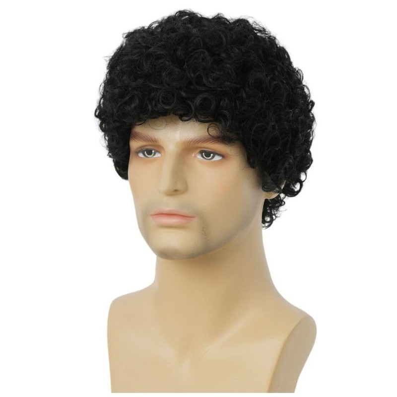 Salaibs Afro Black Wigs for Men 80s Short Curly Elf Wig Synthetic Fiber Disco...